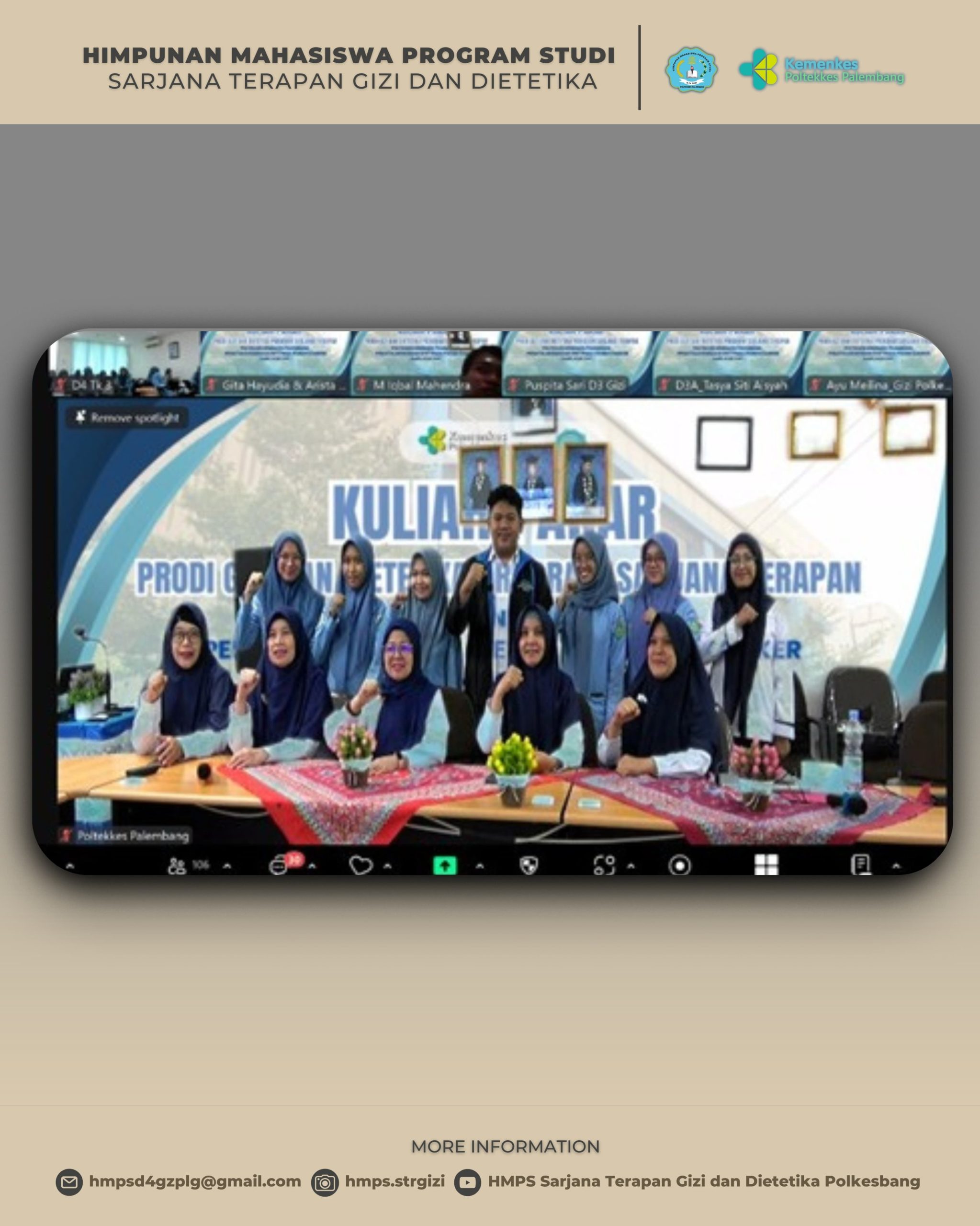 Klik SelengkapnyaPada hari Kamis, 13 Februari 2025, Himpunan Mahasiswa Jurusan Gizi Poltekkes Kemenkes Palembang melaksanakan program kerja tahunan yaitu Webinar Hari Gizi Nasional Jurusan Gizi Poltekkes Kemenkes Palembang. Kegiatan Webinar Hari Gizi Nasional adalah seminar daring yang diselenggarakan untuk meningkatkan kesadaran masyarakat tentang pentingnya gizi dalam menjaga kesehatan. Acara ini menghadirkan para narasumber yang membahas berbagai…