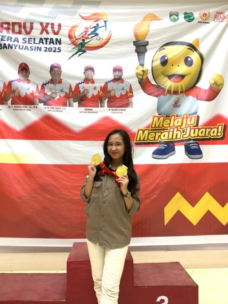 Nayla Fachirunisa, Mahasiswa Sarjana Terapan Gizi Poltekkes Kemenkes Palembang, berhasil meraih penghargaan Provinsi pada Kompetisi Porprov ke-XV Musi Banyuasin, Sumatera Selatan Tahun 2025 dengan meraih Medali Emas Kategori Tim Mix U-22 dan Medali Emas Kategori Tim Putri U-22.