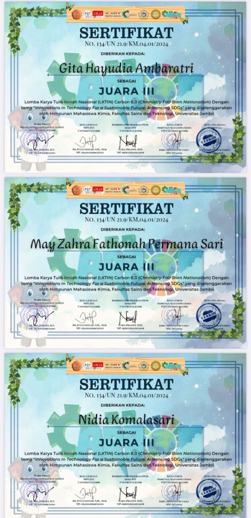 Kegiatan Carbon 6.0 yang diselenggarakan oleh Universitas Jambi merupakan ajang kompetisi ilmiah tingkat nasional yang mempertemukan mahasiswa dari berbagai perguruan tinggi di Indonesia dalam bidang kepenulisan ilmiah.